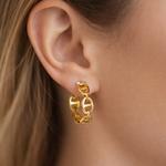 Ces boucles d’oreilles épaisses incarnent une élégance moderne et assumée. Leur forme ouverte capte la lumière à chaque mouvement, dessinant autour de vous une aura confiante et magnétique.