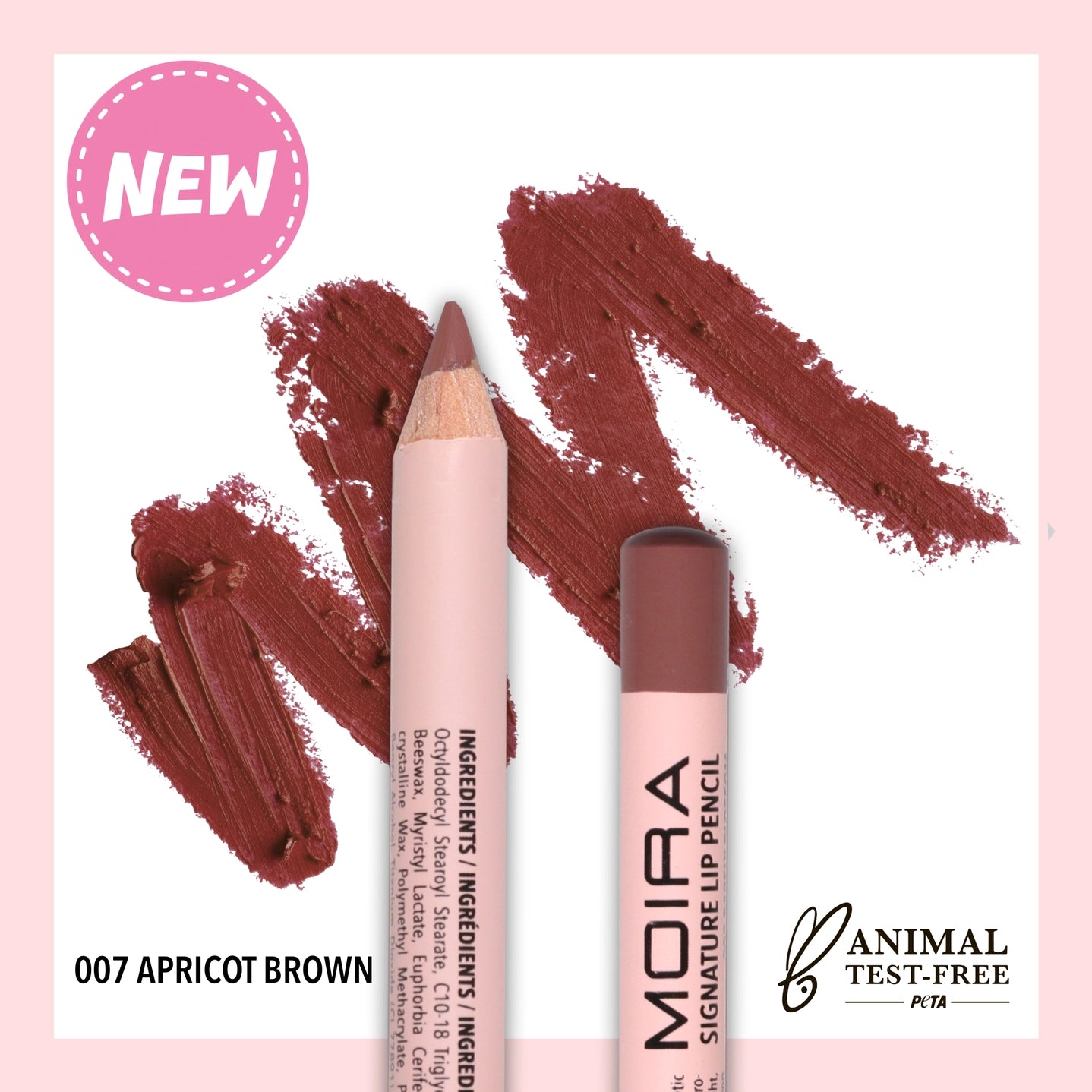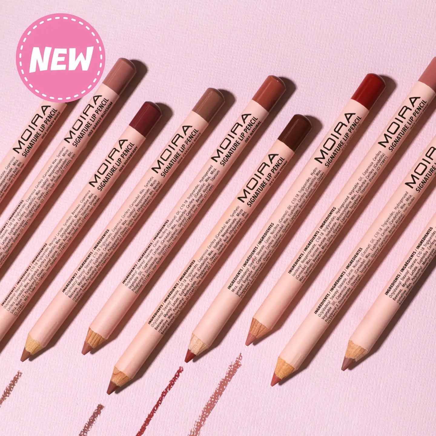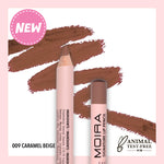 Le crayon à lèvres MOIRA Signature est riche et crémeux, il s’applique en un seul geste.